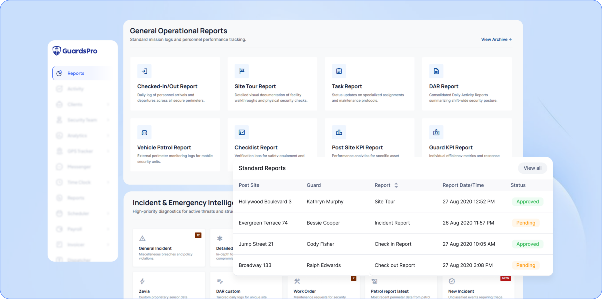 Instead of relying on phone calls and scattered updates, you gain centralized visibility into attendance, patrols, and reports. With built-in real-time guard tracking, supervisors can monitor check-ins, check-outs, and patrol activity as they happen.