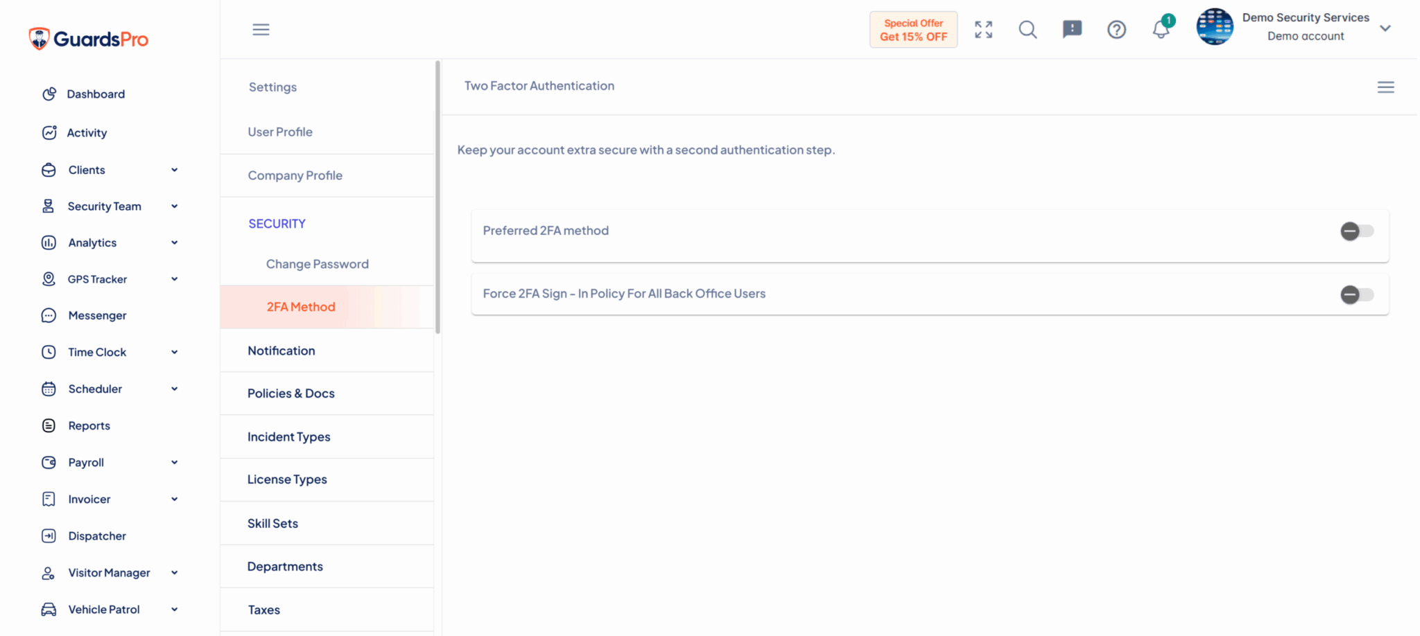 This feature ensures every team member’s access is safeguarded — reinforcing GuardsPro’s commitment to secure, compliant operations.