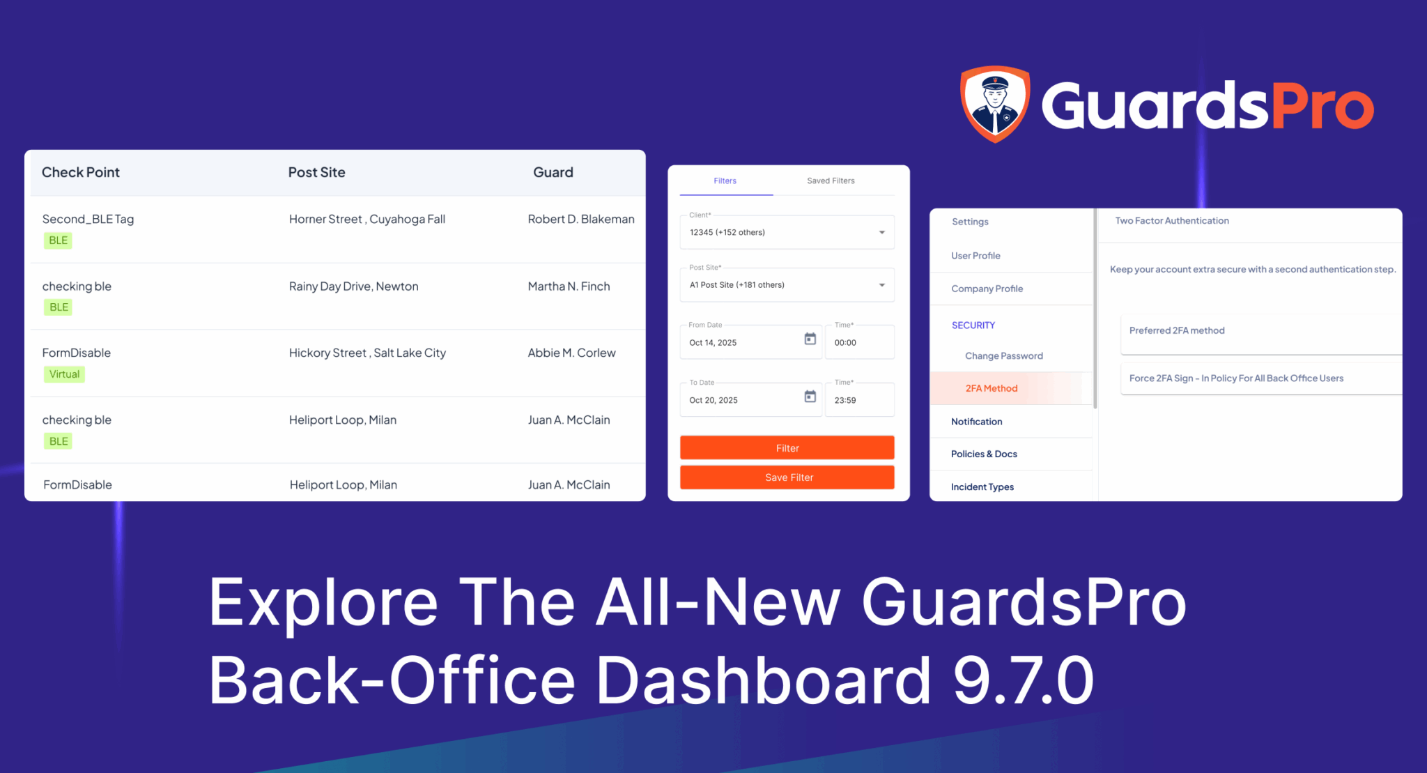 The GuardsPro Back-Office Dashboard 9.7.0 update delivers more control, visibility, and protection than ever before.
